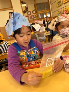みんなで掘ったさつまいもを使ってクッキングをしました!