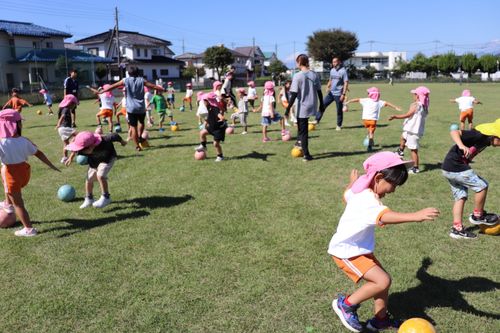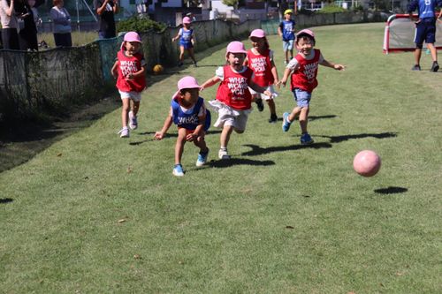 年長さんのサッカー教室が行われました。コーチたちにボールと仲良くなる方法を教えてもらって、たくさんゲームもしました⚽
