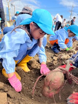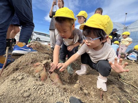 5月に年長さんが植えたさつまいもの苗が、立派な大きなさつまいもになりました!!大豊作のお芋に子どもたちも大興奮!