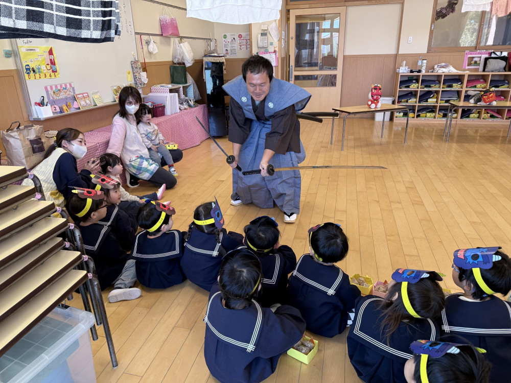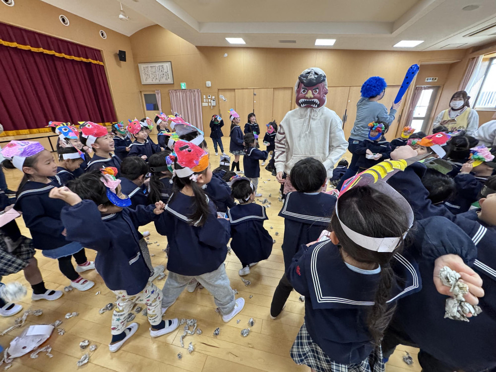 節分なので、裃姿のPTA会長さんと一緒に豆まきをしました👹みんなで元気いっぱい「鬼は~そと!福は~うち!」